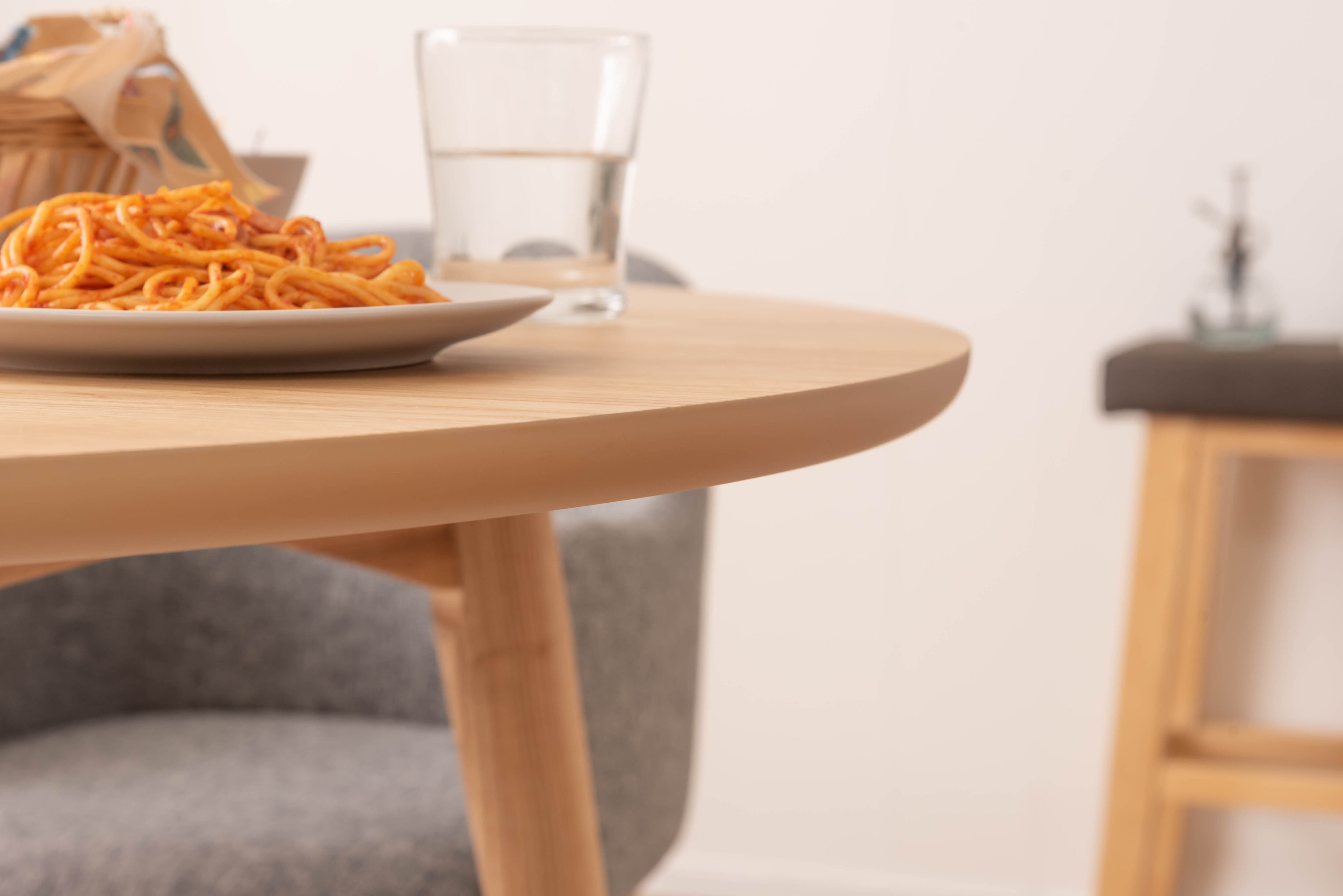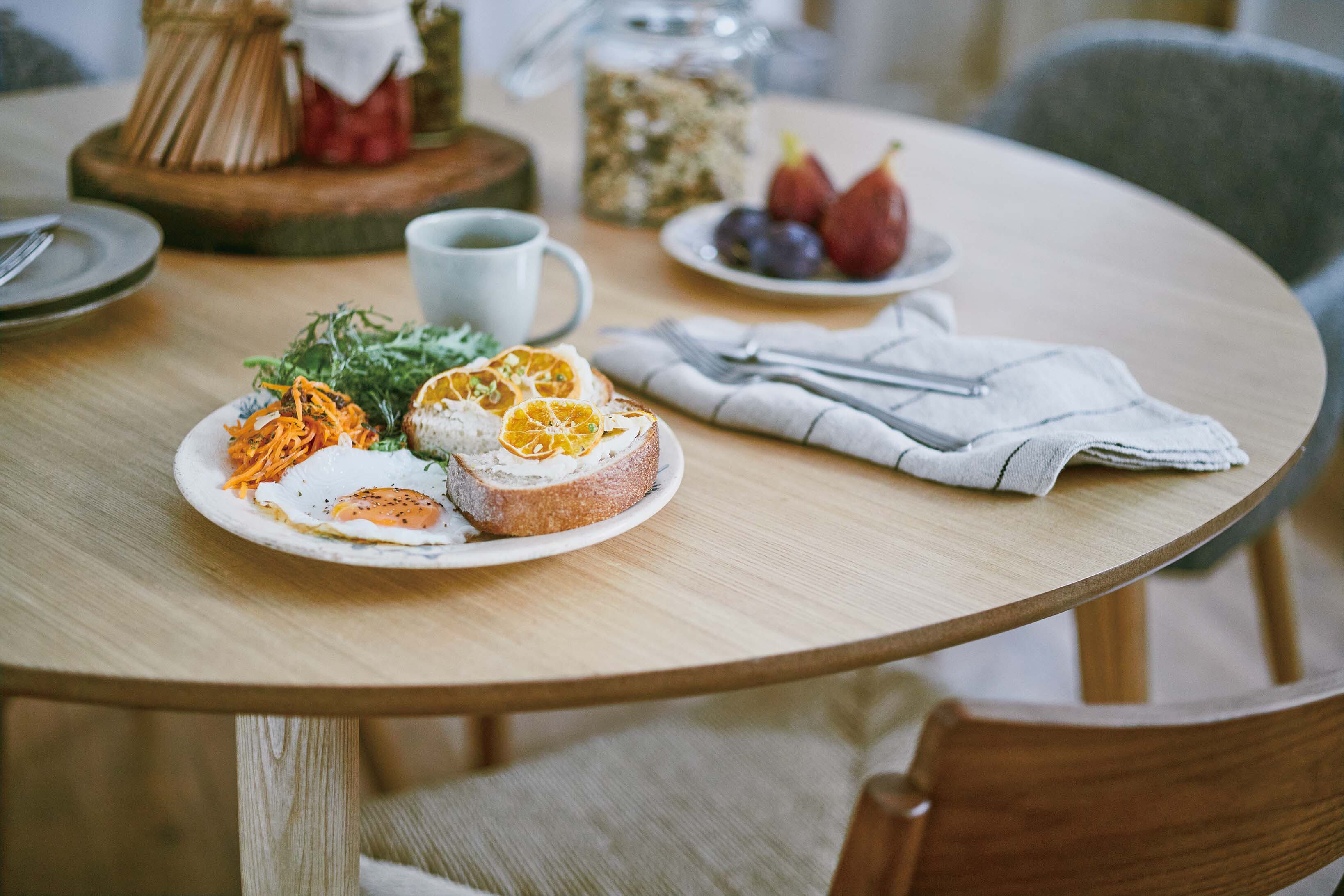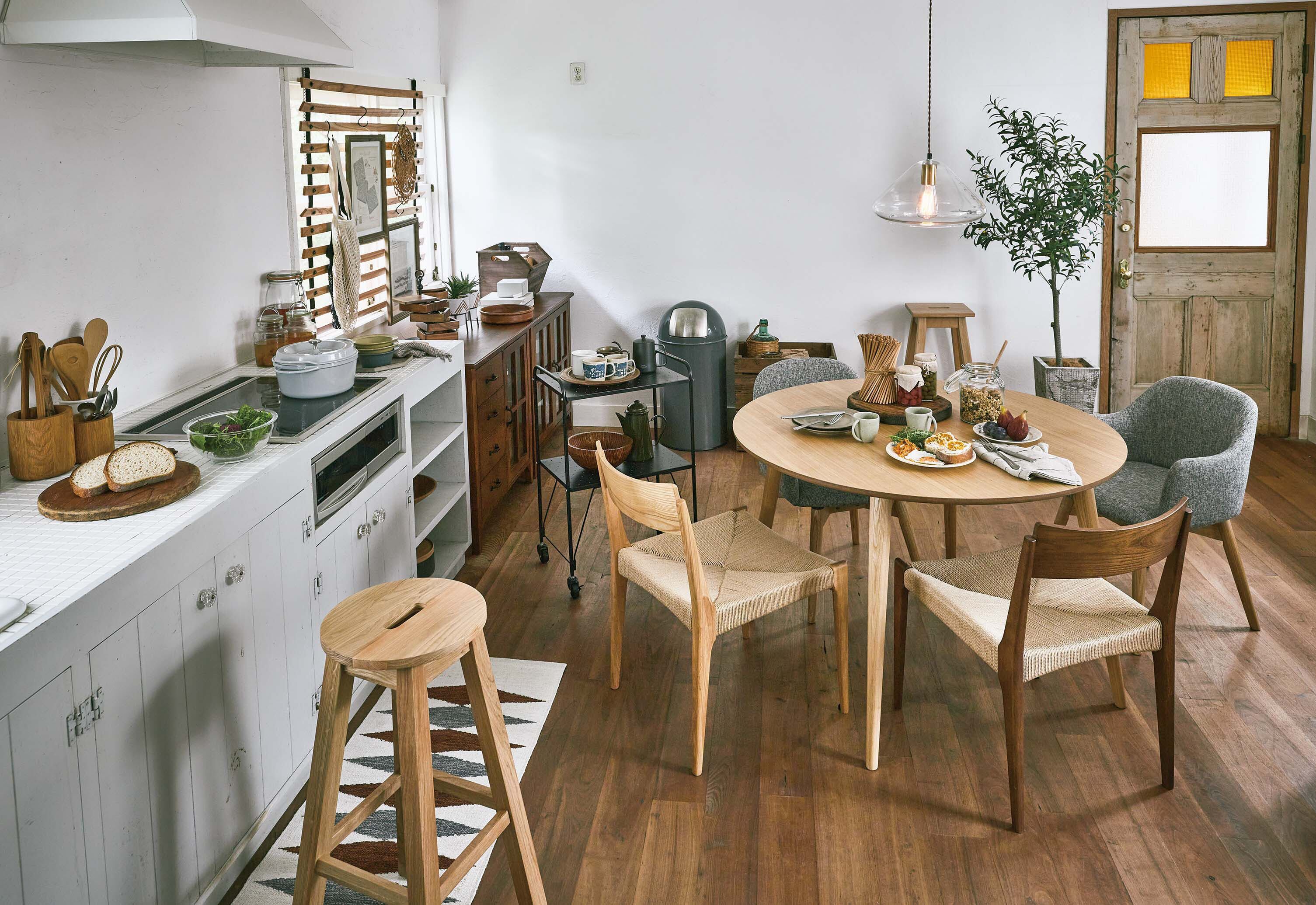 脚部は角を落とし、ハの字に設計することで、優しい印象に。